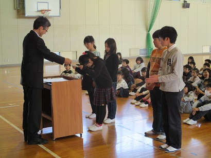 11月13日(月)に、任命式・表彰式・児童集会がありました。