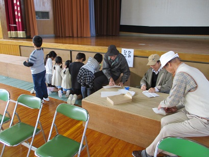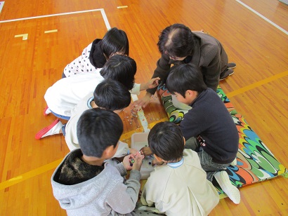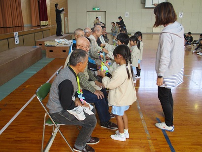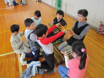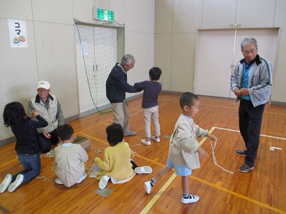 10月30日(月)に、1・2年生は老人会の方に昔の遊びを教えていただきました。