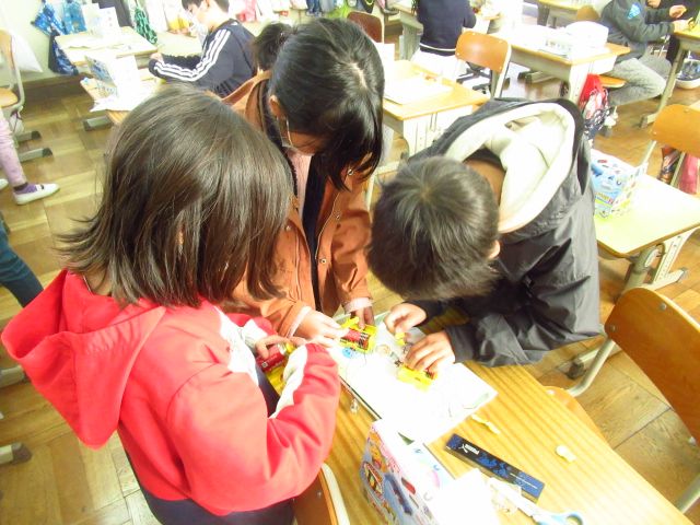 豆電球がつくか確かめています。