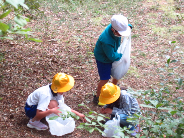1,2年生は偕楽公園に遠足に行きました。子どもたちは、お弁当やおやつを嬉しそうに食べていました。ところで秋は見つかったでしょうか?