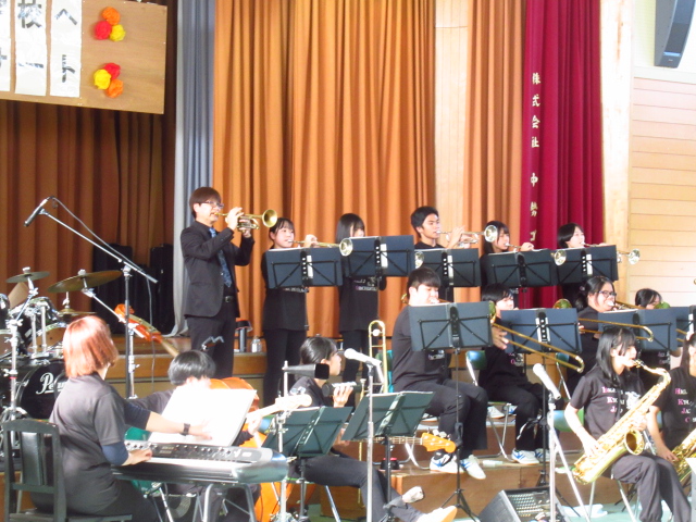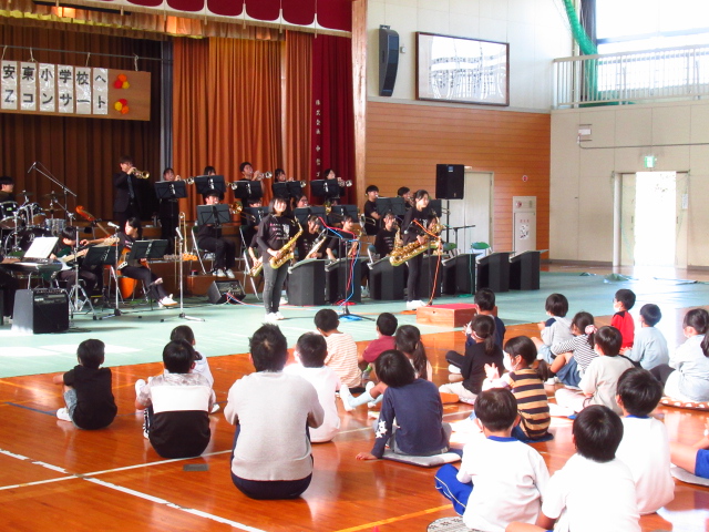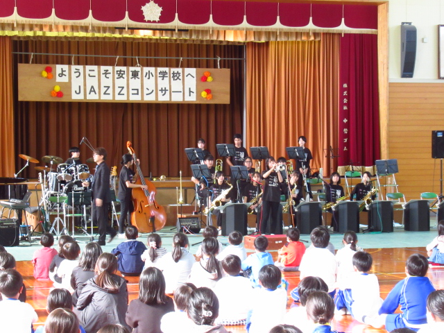 本日、午後 東橋内中学校吹奏楽部(ジャズバンド)の演奏を聴きました。子どもたちは中学生のお兄さん、お姉さんのひたむきな姿に感動していました。名曲「カメレオン」「sing sing sing」では大いに盛り上がりました。途中、サックス、アゴゴなどの楽器の紹介などもあり、あっという間の一時間でした。子どもたちもとても充実した時間を過ごせたと思います。すばらしい演奏をありがとうございました。