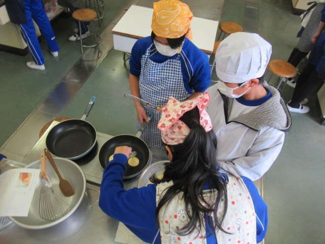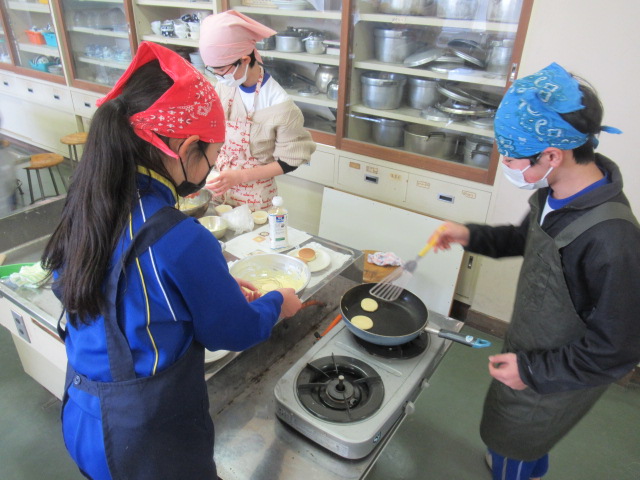 昨日、調理実習を行いました。とても美味しそうなホットケーキと蒸しパンを作りました。みんな手際よく、行っていました。