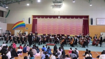 12月25日(金)に、舞台芸術等総合支援事業(学校巡回公演)で、関西フィルハーモニー管弦楽団の方に訪問していただきました。プロの音色に子どもたちもうっとり。校歌も演奏していただくなど、とっても素敵な時間となりました。