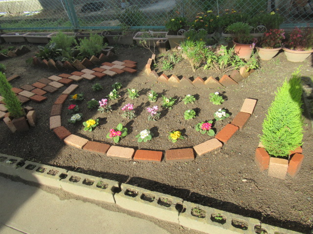 フラワーボランティアさんのご支援により、体育館に通じる花壇が素敵になりました。