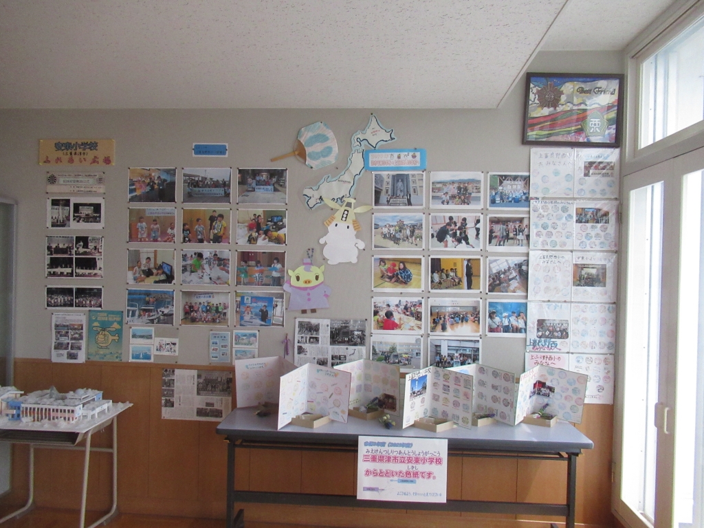 7月21日から23日まで8名の代表児童が北海道上富良野西小学校との交流に出かけました。小学校内には、安東小学校との交流に関してのコーナーがありました。