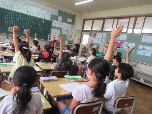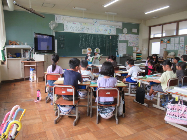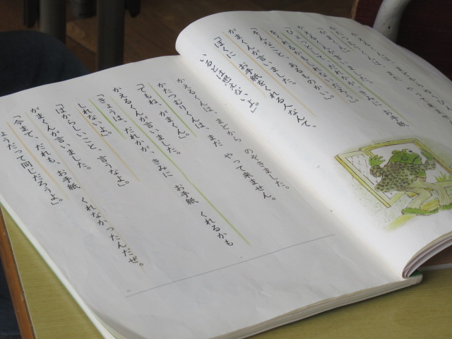 国語の時間の様子です。「お手紙」の中のがまくんとかえるくんの気持ちを考え、音読劇をしています。