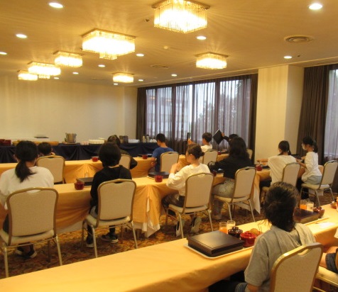 ホテルでの食事風景です。黙食をしっかり行っていました。下段の食事は朝食。