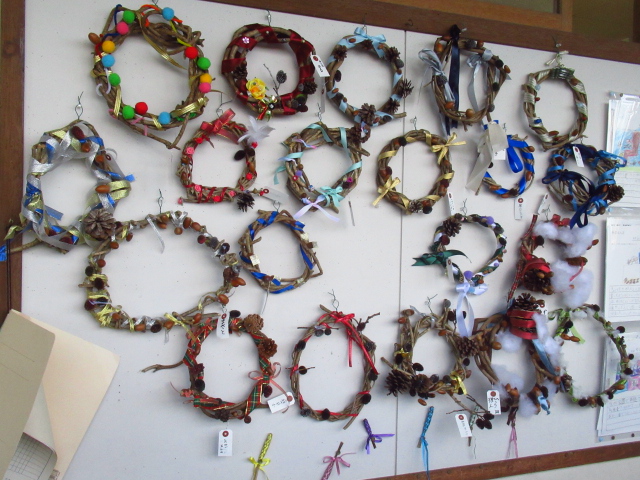 冬休みも近づきました。こどもたちがリースを作りました。