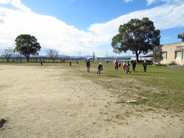 天気もよく、今日は全校生徒の半分ちかくの子どもたちが元気に遊んでいます。