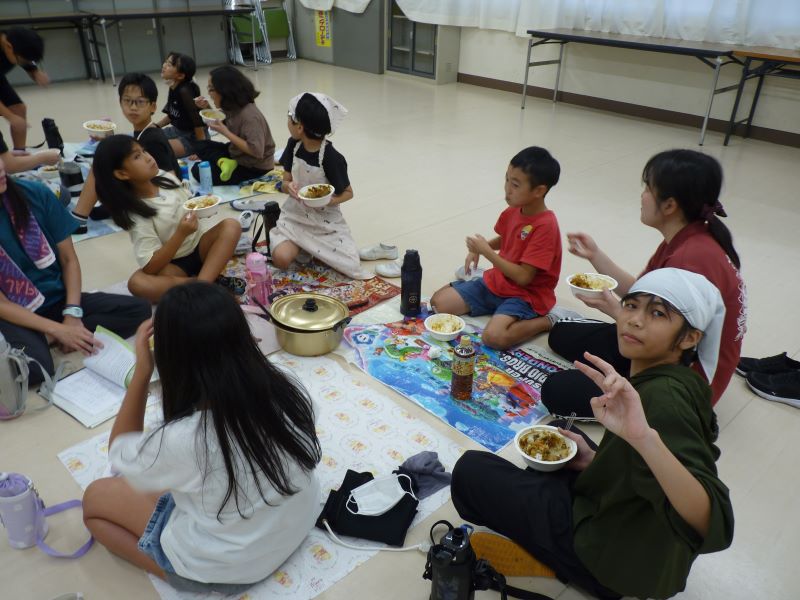 9月26日(金)、5年生が校内でデイキャンプ活動を行いました。開会式やクラス写真撮影、レクレーション、飯盒炊飯でのカレー作り、キャンドルファイアー等を体験しました。