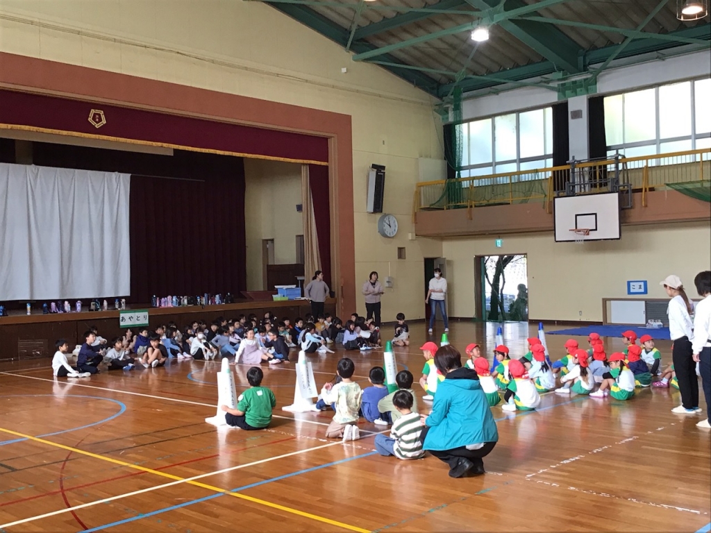 9時40分ごろ「風の丘」から19人、戸木幼稚園から10人の年長さんが、戸木小学校の1年生との交流会のために来てくれました。