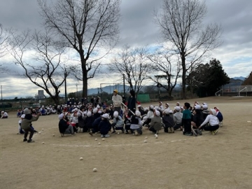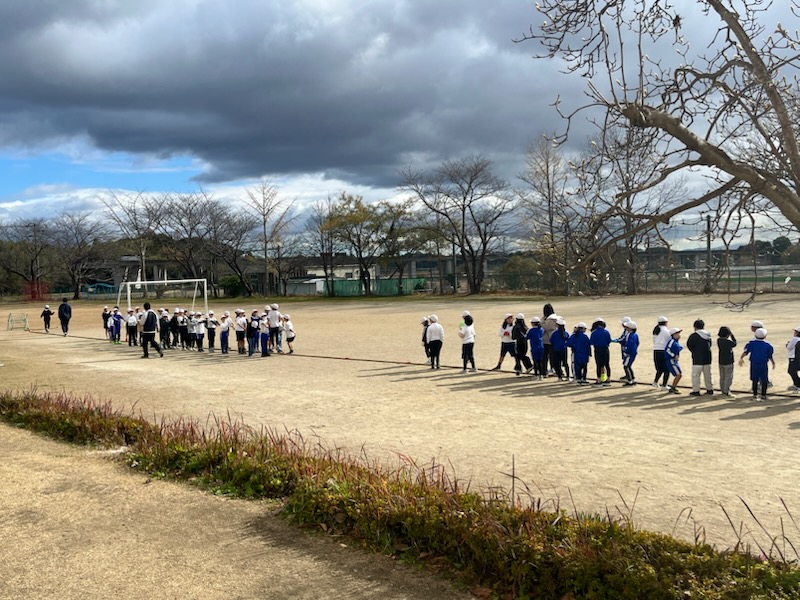 その近くで元気いっぱい縄跳びをしている子どもたち。最初は1回も飛べなかった子も「練習したら今日は10回とべた!」「後ろ跳びできる!!」「見て!見て!!」と次々技を披露してくれます。明日は厚着をして運動場に出ることにします。