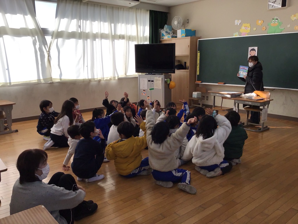 この4月から1年生になる戸木幼稚園の年長さんたちが、戸木小学校にきてくれました。