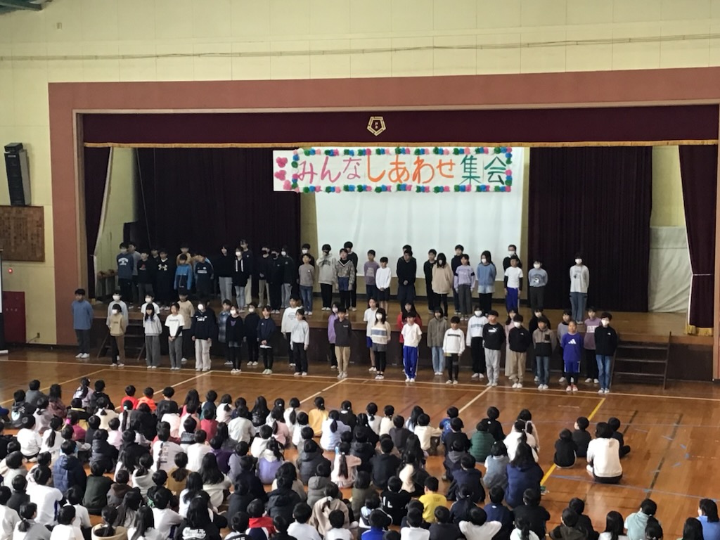 2限目は「みんなしあわせ集会 5年生Ver.」でした。インフルエンザで学級閉鎖になったため延期し、今日はまさに待ちに待った!です。