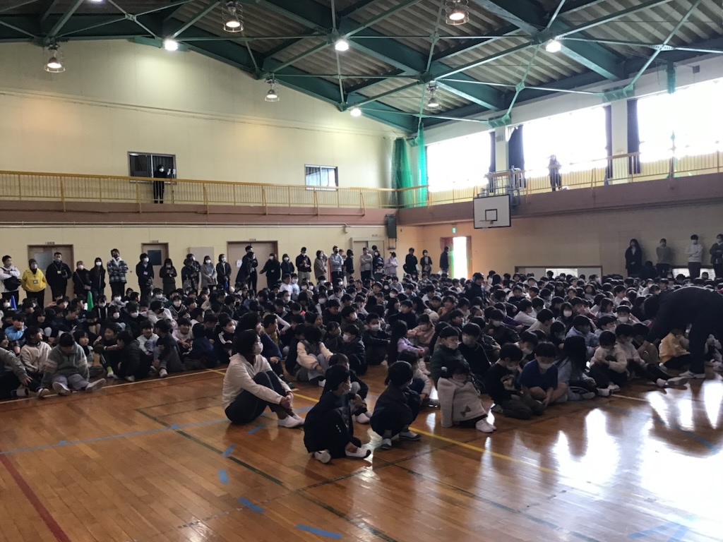 司会の児童会が役員が「それでは5年生の皆さん、お願いします」とアナウンスすると、「はい!!!!」と体育館に響き渡る元気な声の5年生が立ち上がりました。さすがです。ちょっと緊張気味の5年生たち。それでも暖かな皆さんみ包まれて頑張っていました。