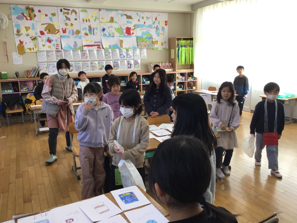 いっぱいお買い物して、図工室でお弁当を食べて帰っていきました。桜が咲くころ、待っていますね!また来てね。