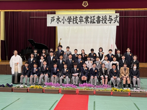 給食後短い時間でしたが、「お別れ会」を行いました。やっぱりみんなで歌う校歌は迫力があります。1~5年生が6年生にお礼とお別れの言葉を送り、6年生が在校生や先生たちに感謝の言葉を送りました。最後は涙なく、みんなニコニコで終わりました。これぞ戸木小学校!です。