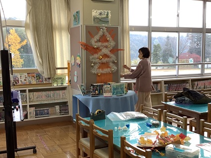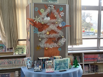 11月25日(火)図書館ボランティアのみなさんが、図書室を12月の飾りに変身させてくれました。早いもので、今年ももうあと1ヶ月です。子どもたちは、クリスマスにお正月にと楽しみがいっぱいですね。その前に2学期、ラストスパートを元気にがんばってもらいたいと思います。