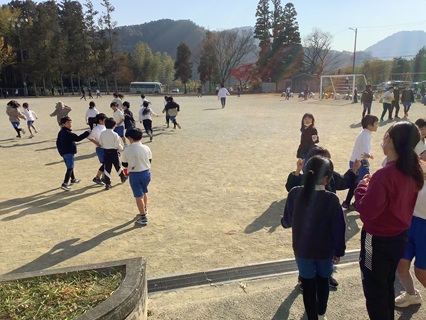 11月27日(木)昼休み、たくさんの子が外遊びを楽しんでいました。ドッジボール、サッカー、おにごっこ、ジャングルジム、ブランコ等、おもいっきり体を動かし楽しんでいる姿が見られました。
