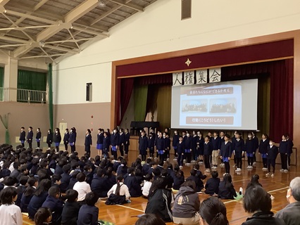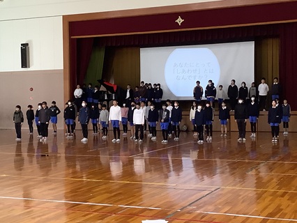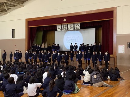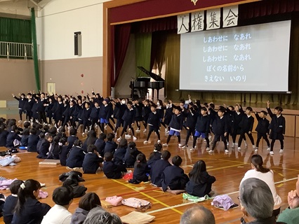 11月28日(金)いよいよ明日は人権集会です。これまで学習してきたこと、考えたことを各学年が発表します。どの学年もこれまで一生懸命練習してきました。今日は、最後の練習ということで、気合の入れ方も違ったようです。子どもたちのがんばる姿をぜひ見に来ていただければと思います。そして、私たち大人も子どもたちとともに人権について改めて考える機会にしていただければうれしいです。