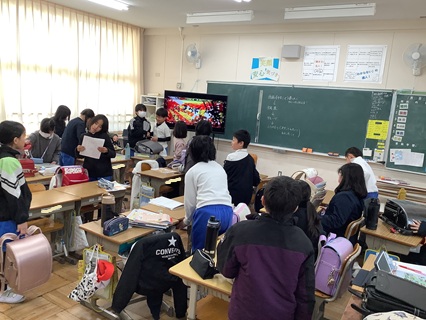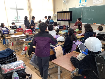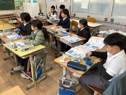 1月30日(金)6限目が終わったころ、4年生の教室から楽しい音楽が聞こえてくるので、のぞいてみると、音楽をかけながら、帰りの用意をしているところでした。音楽にのって、スピーディーに帰りの用意ができること、帰りの用意が楽しくなること、子どもたちが考えてやっているとのことでした。ノリノリで帰りの用意ができること、いいことです。中には、音楽に合わせて、一緒に歌っている子も。楽しい帰りの用意の時間でした。