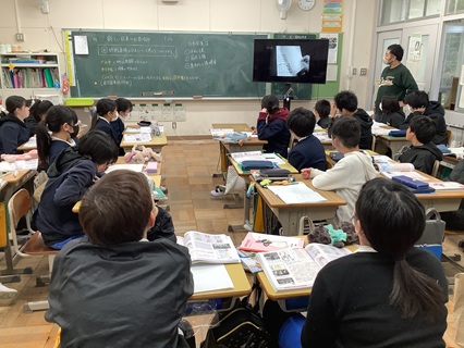 1月29日(木)6年生が社会「新しい日本のあゆみ」の学習で、終戦直後の日本について学び、考えていました。当時の映像をもとに、終戦直後の日本が連合軍の占領下で極度の食糧難とインフレに見舞われ大変なくらしだったことを学んでいました。学校給食の始まりの映像や日本国憲法についても触れられていました。映像があることで、より現実的に考えられ、当時のくらしぶりを想像できるようでした。授業の最後にふりかえりをノートに書きますが、学習したことから自分が感じたこと、考えたこともしっかりと書いていました。どの子も一生懸命考え、ノートに向かう姿勢がすばらしかったです。