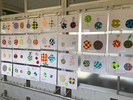 1月30日(金)6年生の図工の作品です。季節をイメージして、色画用紙を切って組み合わせたとのことです。すてきな作品が廊下に掲示されています。