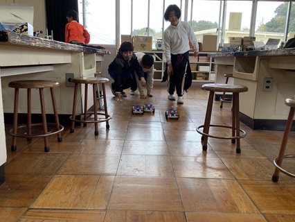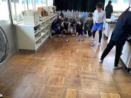 3月13日(金)5年生が理科「電流のはたらき」を学習していました。この学習では、コイルに電流を流すと磁石になる電磁石の性質を学びます。コイルの巻き数を増やすことで磁力が強くなることを知り、モーターなどに応用されます。車のキットを使って学習をしてきましたが、この日は、学習のまとめで、学習したことをもとに、車を走らせていました。遊び心も少し入って、車を改造している子もいて、楽しい学習のまとめとなったようです。