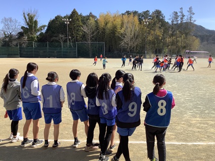 3月16日(月)6年生が最後の体育ということで、サッカーのゲームを楽しんでいました。花組対星組で、男子同士、女子同士のゲームをしていました。白熱したゲームに、応援の声も大きくなり、盛り上がっていました。これも小学校生活の楽しい思い出の1つになったのではないでしょうか。