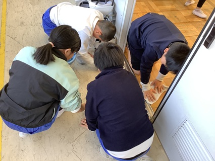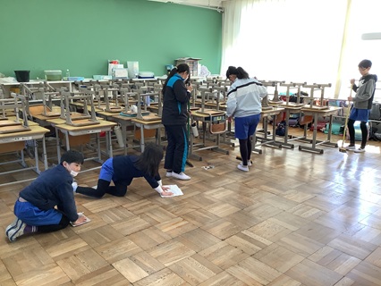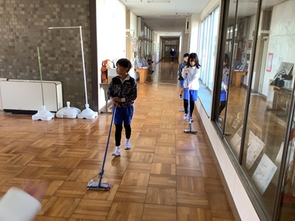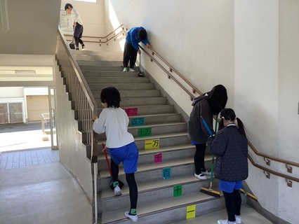 3月24日(火)大掃除をしました。1年間使った教室、廊下、トイレ、流し、特別教室の隅から隅までピカピカにしようとみんながんばりました。机やロッカーの名前や番号シールを剝がしたり、普段なかなかとれない汚れもしっかりとこすり取ったり、拭き掃除もいつもより念入りにしていました。これで、来年度新しい学年でまた気持ちよく使えます。すばらしい働きぶりに感心です。