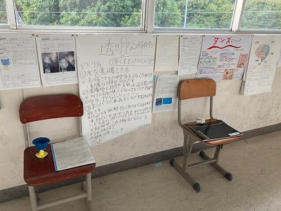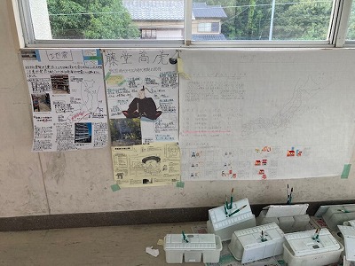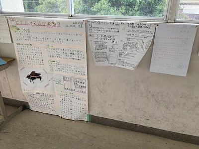 6年教室前ろうかに、夏休みの自由研究が展示されていました。