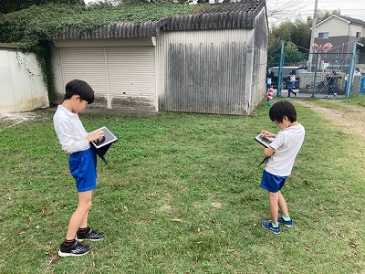 子どもたちに尋ねてみると「サクラの木の写真を撮っている」とのことでした。