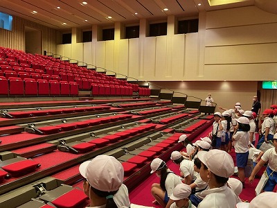 また、多目的ホールでは階段式のイスが電動で配置されるところもみせていただきました。