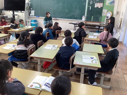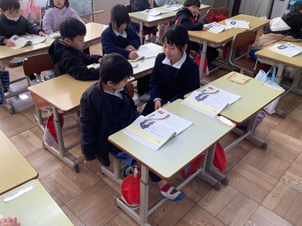 1月9日(金)1年生が国語で詩を読み合っていました。『かたつむりのゆめ』という詩で「なりきってよもう」がめあてです。4行の短い詩ですが、ことば一つひとつにこだわり、感じたことや考えたこと、想像したことなどをペアで考えたり、みんなの前で発表したりしていました。かたつむりになりきって読んでくれることでしょう。
