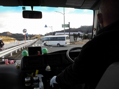 今朝もよく冷えました。車のフロントガラスなど、ところどころ、うっすらと雪が残っていました。井生から見た青山高原は、意外にも雪をかぶっていませんでした。名物の風車が気持ちよく回っていました。写真ではどうしても小さくなりますが、実際には75mの高さがあるそうです。 大井公民館の所で、大井バスが本線に合流してきました。井生バスがスピードを落として、見事な連携です! この子は、井生バスを見守るアイドル的存在のぬいぐるみ。 みんなを優しいまなざしで見つめてくれています! |