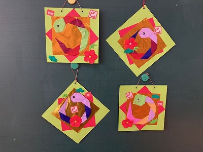 いままで、クリスマスに関する作品や掲示物を紹介することが多かったですが、お正月飾りを紹介するのは初めてです。