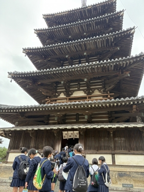 日本最古の建造物、五重塔です。七不思議もしっかり聞きました。