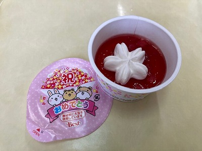 今日の給食メニューのなかに“お祝いいちごゼリー”がありました。