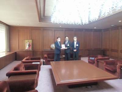 贈呈式の後は、しばらく歓談がありました。 松田社長の地域や子どもたちへの熱い思いに感銘しました。少しでも見習うようにしていきたいと心に誓いました。(ちなみに、今回の寄贈は、松田社長個人によるものです。)本当にありがとうございます。 PS. 「夢と幸せの提供」という表題の言葉は、松田社長の信念だそうです! |