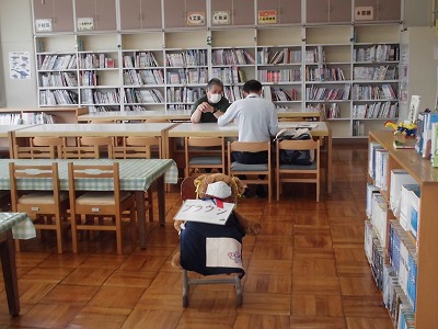 教育委員会の指導主事の先生は、図書室にも足を運び、一志西小の図書活動について熱心に聴き取りをしてくださいました。古川司書から、運営方針、図書委員会やボランティアさんの活動の様子、授業での図書室利用の状況、子どもたちの読書量等々、たくさんのことを説明しました。指導主事の先生の話によると、本校の取組をステキだと評価してくださり、どうやら何らかの形で紹介してくださるとのことです。楽しみです! 乞う、ご期待!
