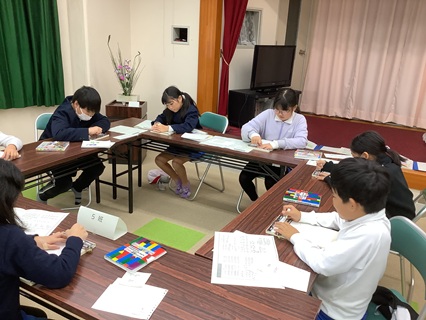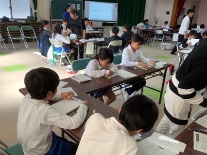 11月11日(火)4年生が川合文化会館で点字体験をさせていただきました。点字を見たことはあっても、点字を作ることは初めてでした。目の不自由な方が、少しでも生活が便利になるように、いろいろなところに点字が取り入れられていることも教えていただきました。作り方を教えていただいて早速取り組み始めると、子どもたちは、すごい集中力で夢中になって作っていました。自分の名前を打ったり、絵カードを作成したりしました。また、川合文化会館の施設の見学もさせていただき、会館の役割についても館長さんからお話を聞きました。担任も入って、自分の考えが「決めつけ」であることはないかを考える劇も見せてもらいました。子どもたちは、しっかり体験し、考えることができていました。
