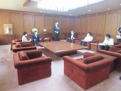 9月11日(金)のホームページにアップした「夢と幸せの提供!」(松田社長様からの教育機器の贈呈式)のことが、本日の中日新聞朝刊の津市民版に掲載されました。その記事を写真に撮って掲載したいところですが、著作権のこともありますので、残念ながらお知らせだけとなります。本日の中日新聞が身近にあるようでしたら、ぜひご覧になってください!この写真は、教育委員会の方が撮ってくれたものです。 市長がお礼の言葉を述べておられる場面です。 左が松田社長様、右が教育長。その隣が私です。 私の右側には、教育次長がいらっしゃいます。 こんな場に自分が・・と、すごく緊張しました。 |