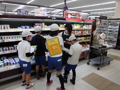 3年生が社会科の「店ではたらく人々の仕事」の学習で、自分たちの住んでいる地域のスーパーマーケットを見学させていただきました。今回は、学校のすぐ下にある『ぎゅーとら』さんにお世話になりました。店長さんから、お店の歴史や商品などについて説明していただいています。子どもたちは「ぎゅーとらの由来」「売れ筋商品ベスト3」など、興味津々でお話を聞いていました! ちなみに、「ぎゅーとら」は肉屋さんからのスタートで『ぎゅーは牛で肉』、創業者の名前の一部から『とら』をとって、足して ぎゅーとら とのことでした。 どんな商品を売っているのか、どんな工夫があるのか、一生懸命調べています。 店員さんにもインタビュー。礼儀正しく質問し、しっかりとお礼も言えていました。伺ったことはきっちりメモを取っていました。これも大切な礼儀です! こちらでは、発酵食品の商品について質問していました。お忙しい中、丁寧に対応してくださった店員さん方に感謝です! ※1時間ほどの訪問でしたが、保護者さんをはじめ、学校にご協力いただいている地域の方々、実にたくさんの方々にお会いし「みんな頑張っているね」と温かいお声をかけていただきました。一般のお客さまも、子どもたちを優先してくださり、子どもは地域の宝だなあと痛感した次第です! |