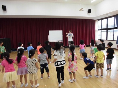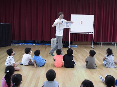 ALTのジョーダン先生が、一志こども園へ出前 “英語で遊ぼう!” に行ってくださいました。年長クラスの子どもたちとの楽しいひと時です! ほとんど英語でお話するのですが、ジェスチャーや絵・数字等でコミュニケーションが成立していくのです!すごいです! 英語の絵本。いたずら好きの5匹のリトルモンキーズが繰り広げる騒動のお話。いたずらのパターンが同じなので、子どもたちの「次、来るぞ来るぞ」という期待が盛り上がって、すてきな一体感でした。 4月の入学が今から楽しみです! |