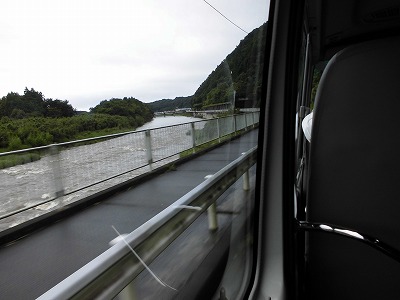 不安定な天気が続きます。今日も早朝には大雨が降って心配をしていたのですが、幸い小雨がぱらつくかどうかという状況になりました。井生バスに乗って、一志学園高校(旧大井小学校)前の雲出川を見てみると、いつもより水量が多く、茶色で白波も立っていました。これ以上降らんといてほしいと願わずにはいられません。