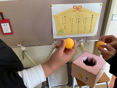 箱の中からピンポン玉を一つ取り出します。そこに書いてある番号の札を見ます。