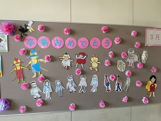 ご紹介が遅れました。前回の図書ボランティアさんの活動で、6年生の卒業をお祝いする掲示物を作っていただきました。いよいよあと1週間で卒業式です。図書ボランティアさんは、多くの保護者様に関わっていただいていますが、特に6年生の保護者さんには感慨深い作業だったと思います。皆様、ありがとうございました!