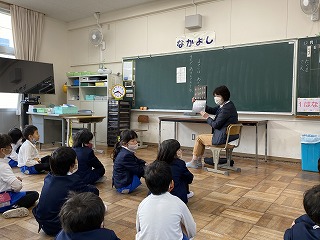 今日は3名のボランティアさんが読み聞かせに来てくださいました。それぞれ、いつも楽しい絵本を選んで読んでくれるので、子どもたちはとても楽しみにしています。本をカバンから出すと、「あ、それ知ってる!」「おもしろそう!」と子どもたちの反応は様々ですが、どの子もニコニコして聞き始めます。心豊かな1日の始まりに最適ですね!午後は、環境整備のボランティアさんが来てくださいます。