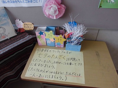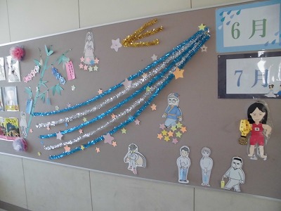 図書室の環境ボランティアの方々が、新たな飾りつけをしてくださいました。なんと、今はやりの二刀流です! 室内は梅雨バージョン、廊下は七夕モードで仕上げてくださったのです。梅雨① かわいさMAXのオールスター勢揃いです! 梅雨② 雨の図書室もいいけど、 やっぱり晴れてほしいよなあ。 七夕① あと1ヶ月あるのですが、願いことを “いの一番” に届けるのもよいかと! ロマンチックですよねー。 七夕② 特設コーナーには、本と七夕飾りが登場です。 七夕③ たんざくの準備もバッチリです! 願いごとがかなうといいですよね! |