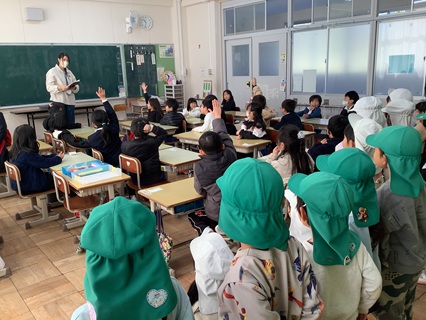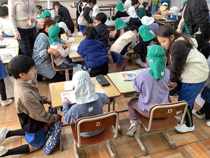 2月17日(火)1年生が一志こども園の年長さんと交流会をもちました。体育館で活動した後は、1年生の教室へ行きました。年長さんに椅子にすわってもらい、1年生を体験してもらいました。プリントにすきな絵を描いてもらい、名前は1年生がていねいに書いてあげていました。1年生は、ペアになった年長さんにやさしく声をかけながらお助けするなど、すばらしいアシストをしていました。小学校では、5,6年生に助けてもらうことが多かった1年生ですが、この1年の成長も感じられ、とても頼もしかったです。